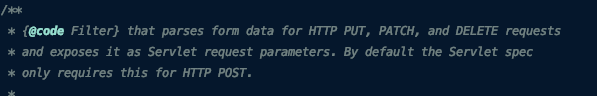 HTTP POST에 Form Data를 보낼 수 있게 서블릿 스펙에 정의되어 있는데, FormContentFilter는 PUT과 PATCH, DELETE 요청에서도 Form Data를 사용할 수 있도록 Wrapping 해준다.