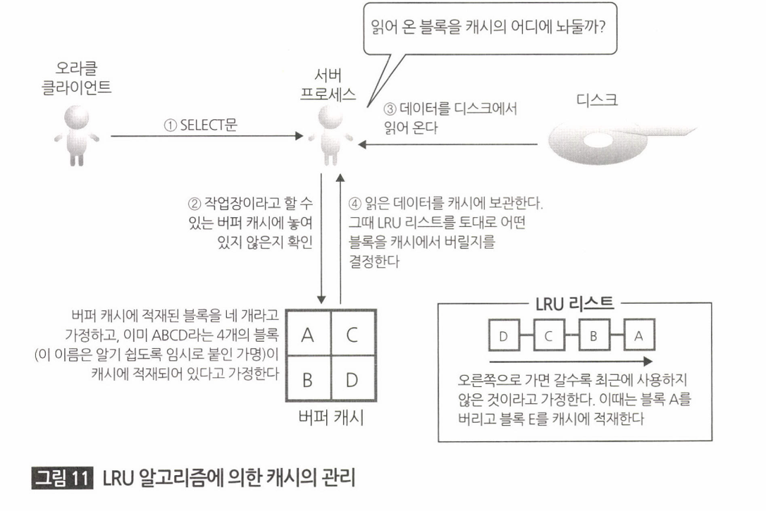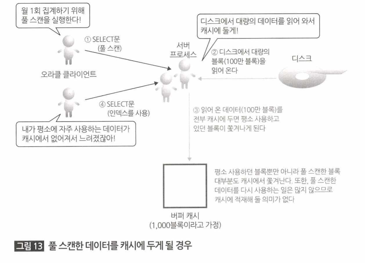 풀 스캔한 데이터를 예로들자면 풀 스캔한 대량의 데이터를 버퍼 캐시에 저장을 한다면