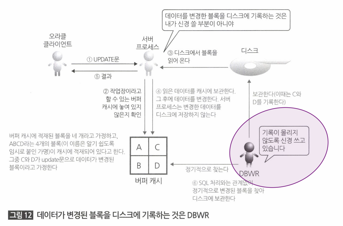 이는 백그라운드 서버의 일부인 DBWR가 담당한다.