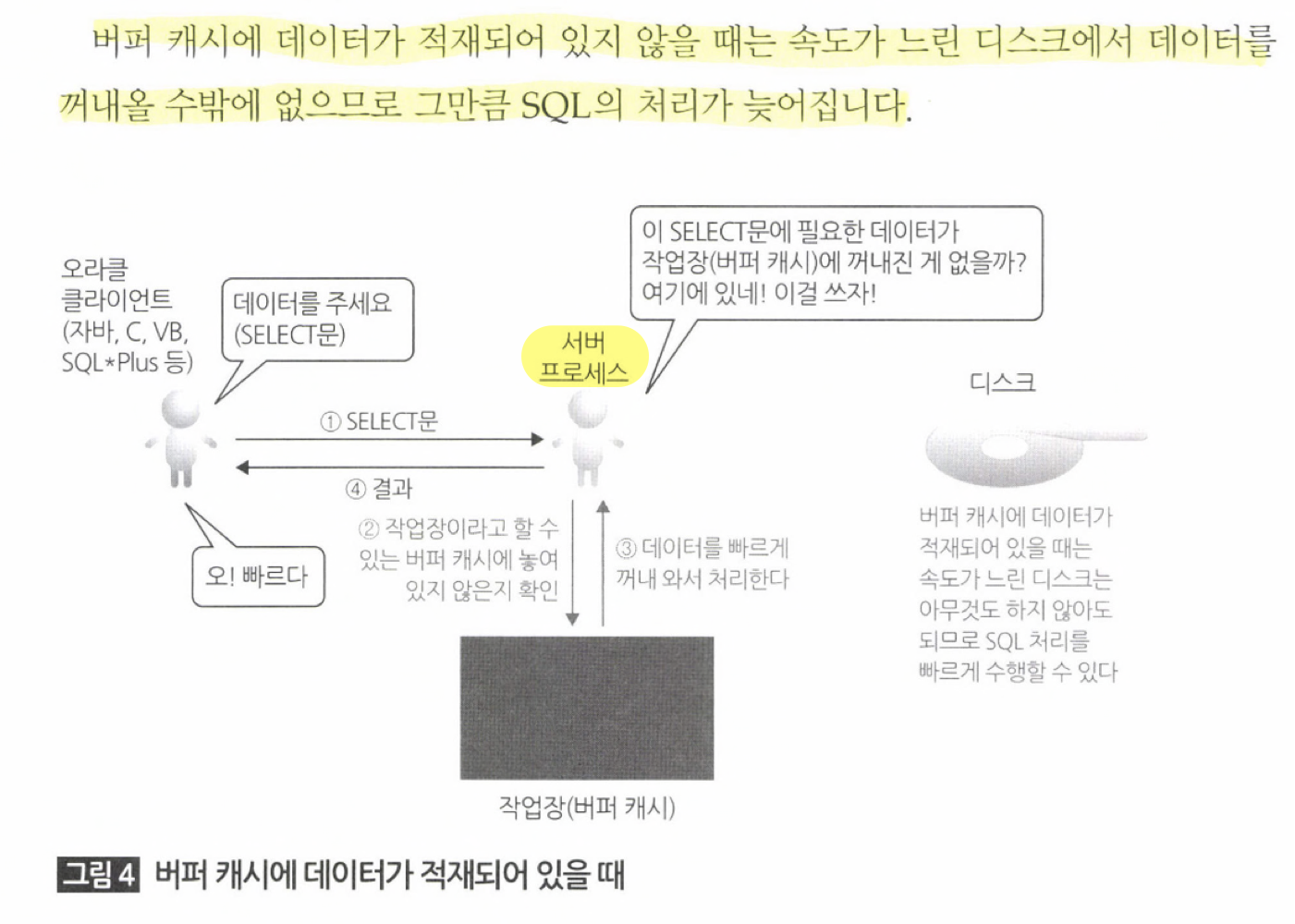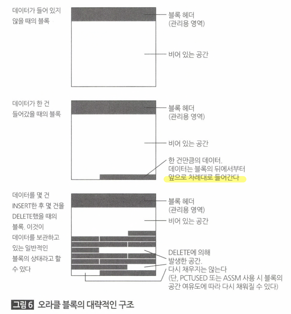 블록단위로 데이터를 관리하는 오라클 (버퍼캐시, 디스크 에)