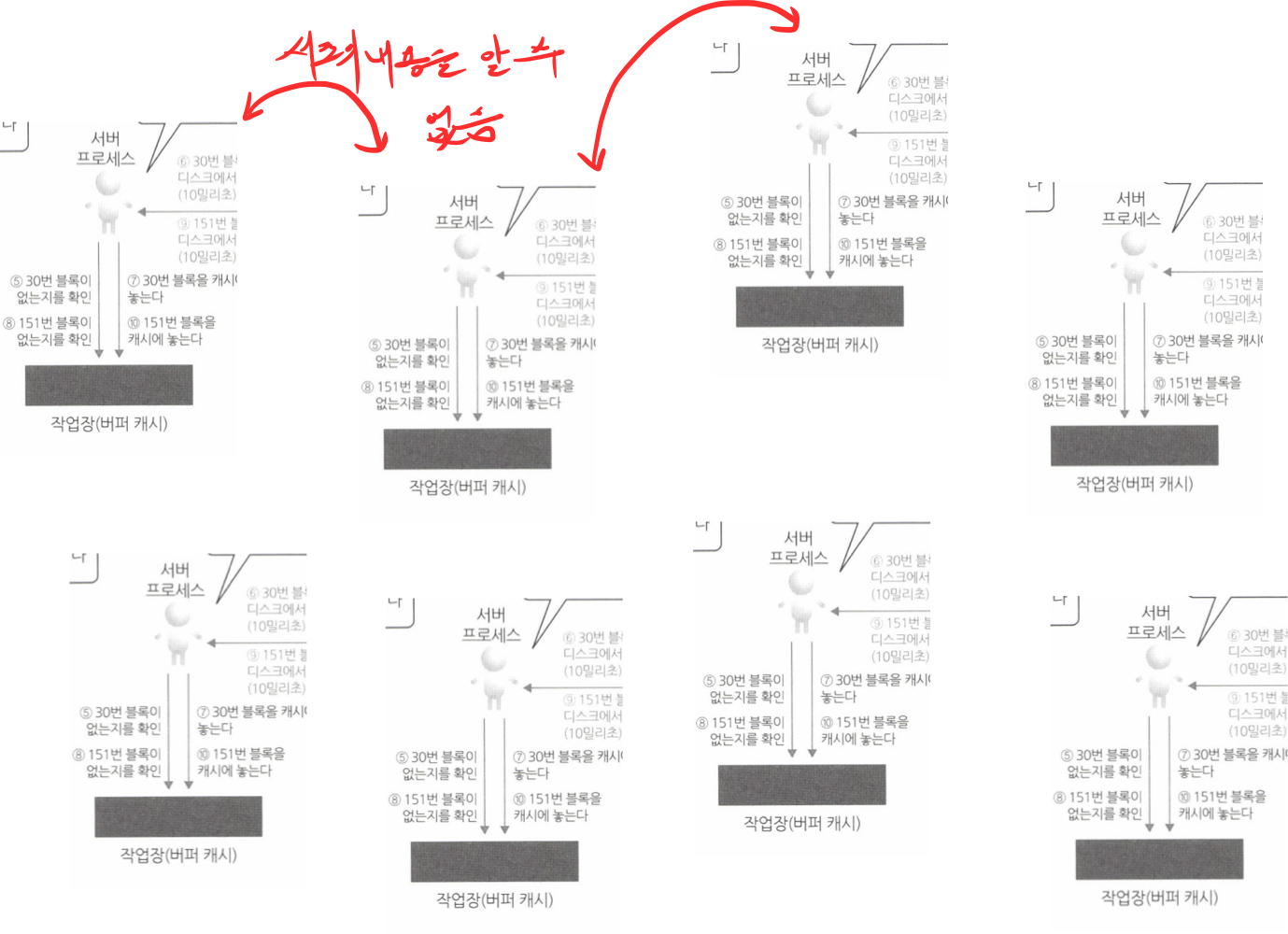 또한 한 프로세스마다 각각의 버퍼캐시를 가지는 것은 각각의 저장소를 사용하는 것과 같으므로 서로의 데이터를 볼 수 없다.