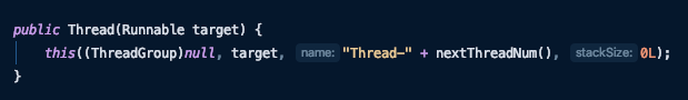 Thread 클래스중 Runnable 인터페이스를 파라미터로 받는 생성자에 만든 파라미터를 전달해야 한다.
