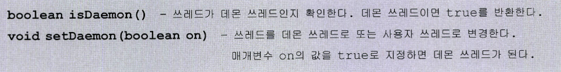 - 일반적인 쓰레드의 작업이 종료되면 데몬 쓰레드도 함께 작업이 종료된다.