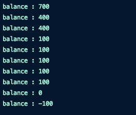 인출하려는 금액이 현재 잔고보다 적거나 같을 때만 인출 가능하다고 했는데 잔고는 -100이다.