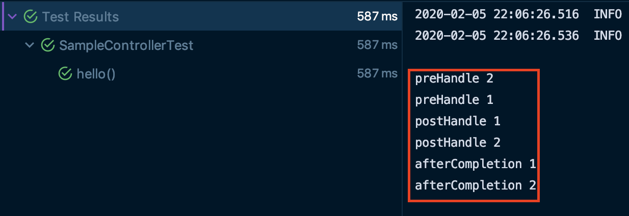 이때 preHandle에서는 다음 처리로 넘어갈 수 있도록 return 값을 true로 변경시킵니다.