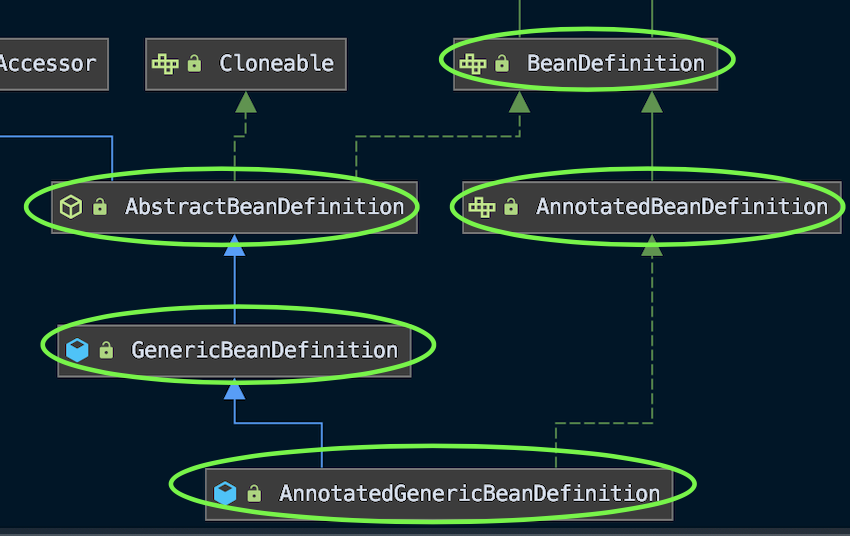 AnnotatedGenericBeanDefinition가 핵심이므로 해당 클래스에 대한 상속 구조를 명확하게 해 두는 것이 좋을 것 같다.
