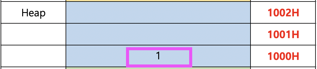 현재 Heap에 할당된 int의 주소가 1000H를 가리키기 때문에