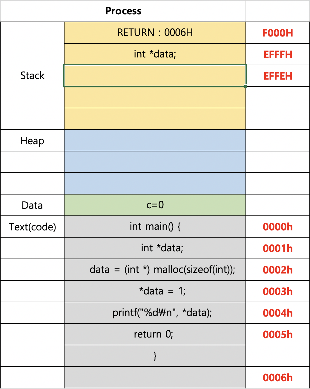 C언어 코드를 예로 들어 힙에 대한 메모리 구조를 살펴보자
