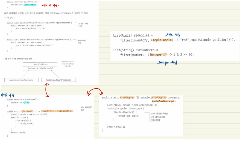 결론 : Applepredicate를 상속받는 특정 객체를 filterApples 에 전달하면서