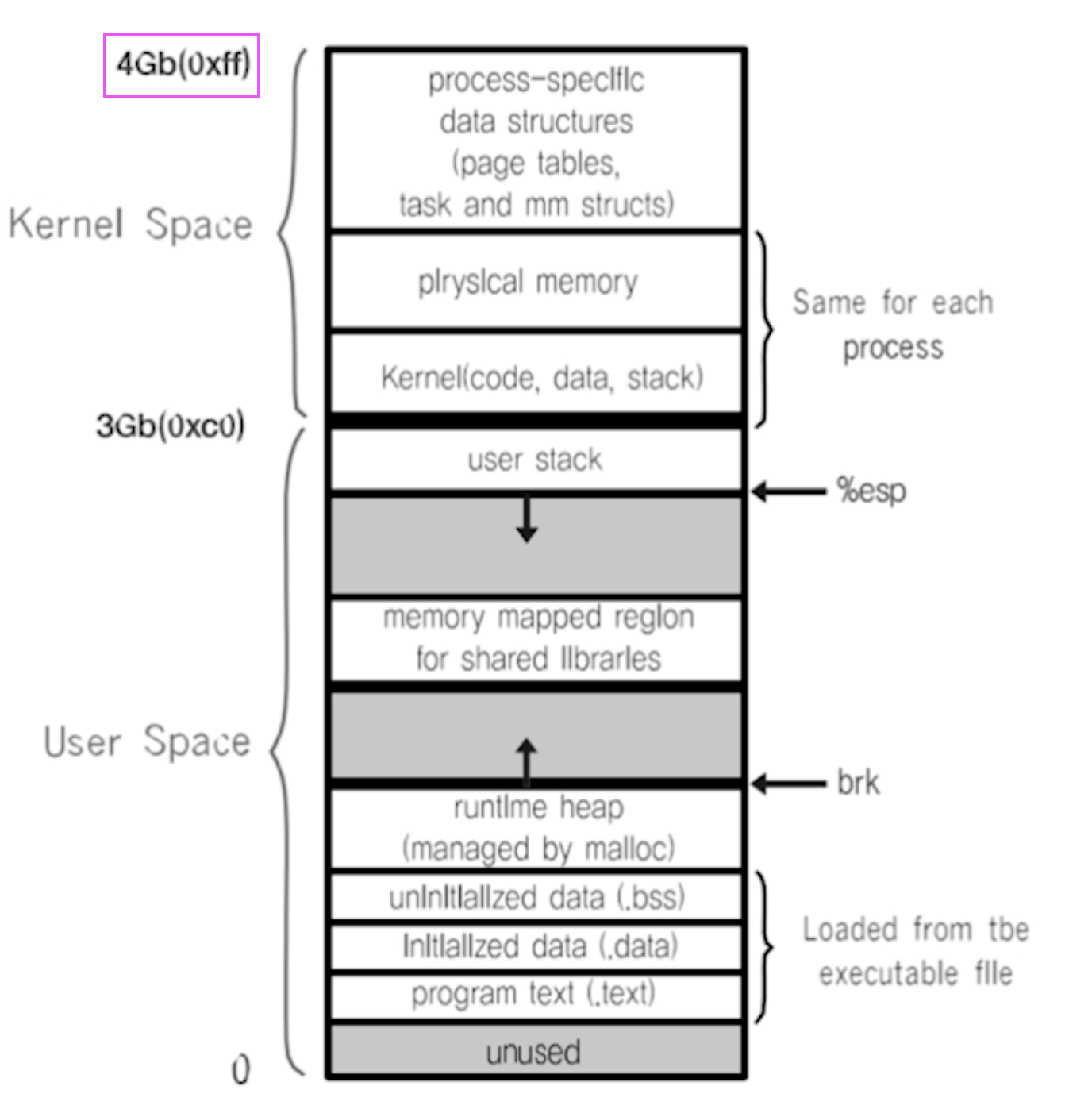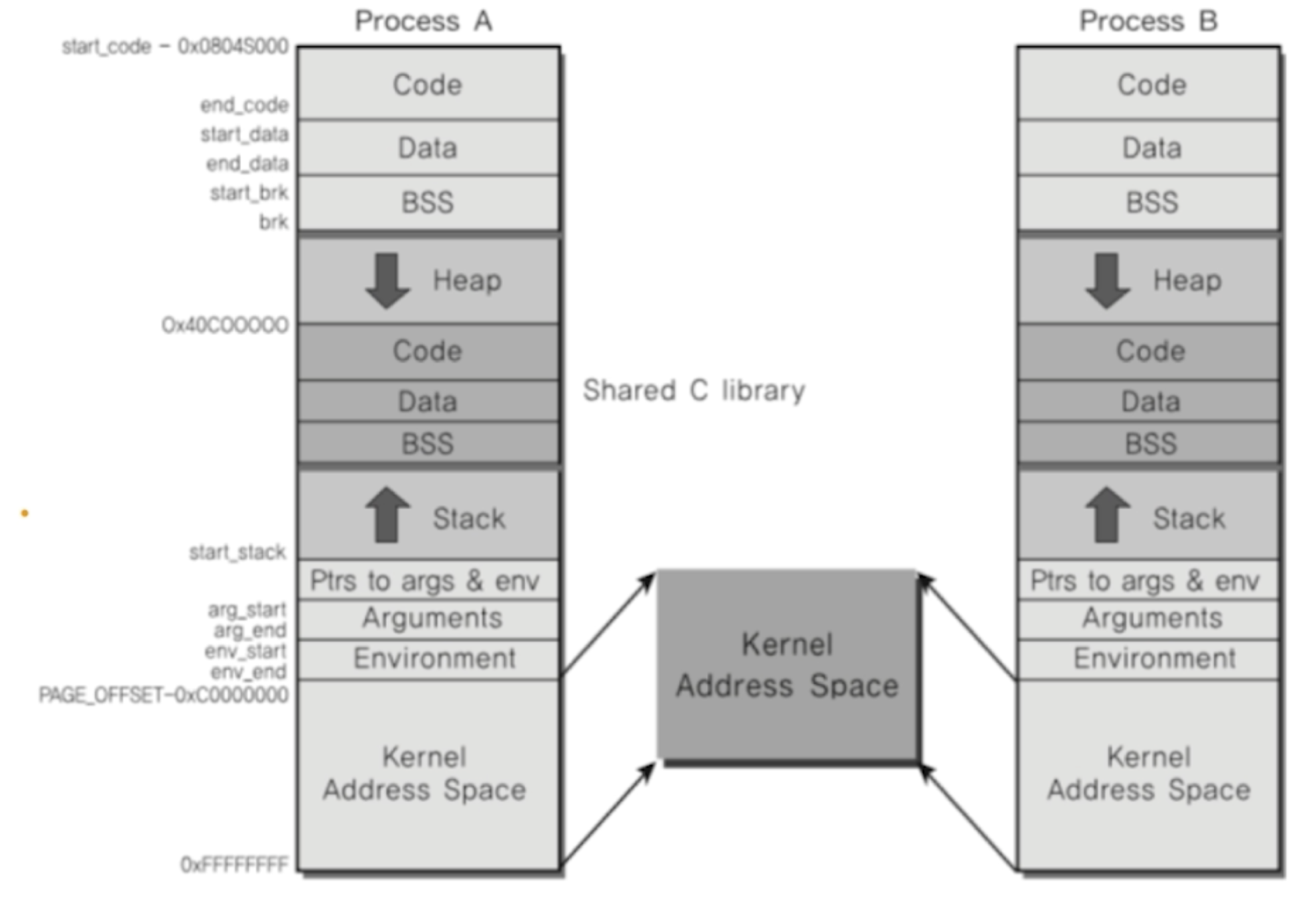 모든 프로세스는 4GB 의 공간을 가진다.