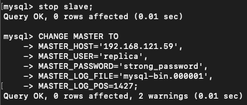 GRANT REPLICATION SLAVE ON *.* TO 'replica'@'192.168.121.14';