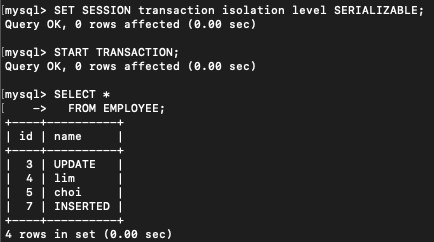 - 그러기 때문에 SELECT를 하더라도 결과가 항상 처음과 동일했던 것이다. (phantom-read도 발생하지 않음)