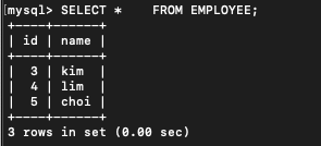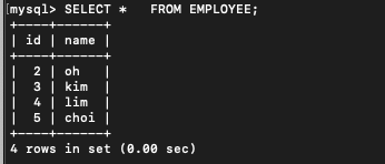 사전에 EMPLOYEE라는 테이블에 예시 데이터를 몇 개 넣고 시작하자!
