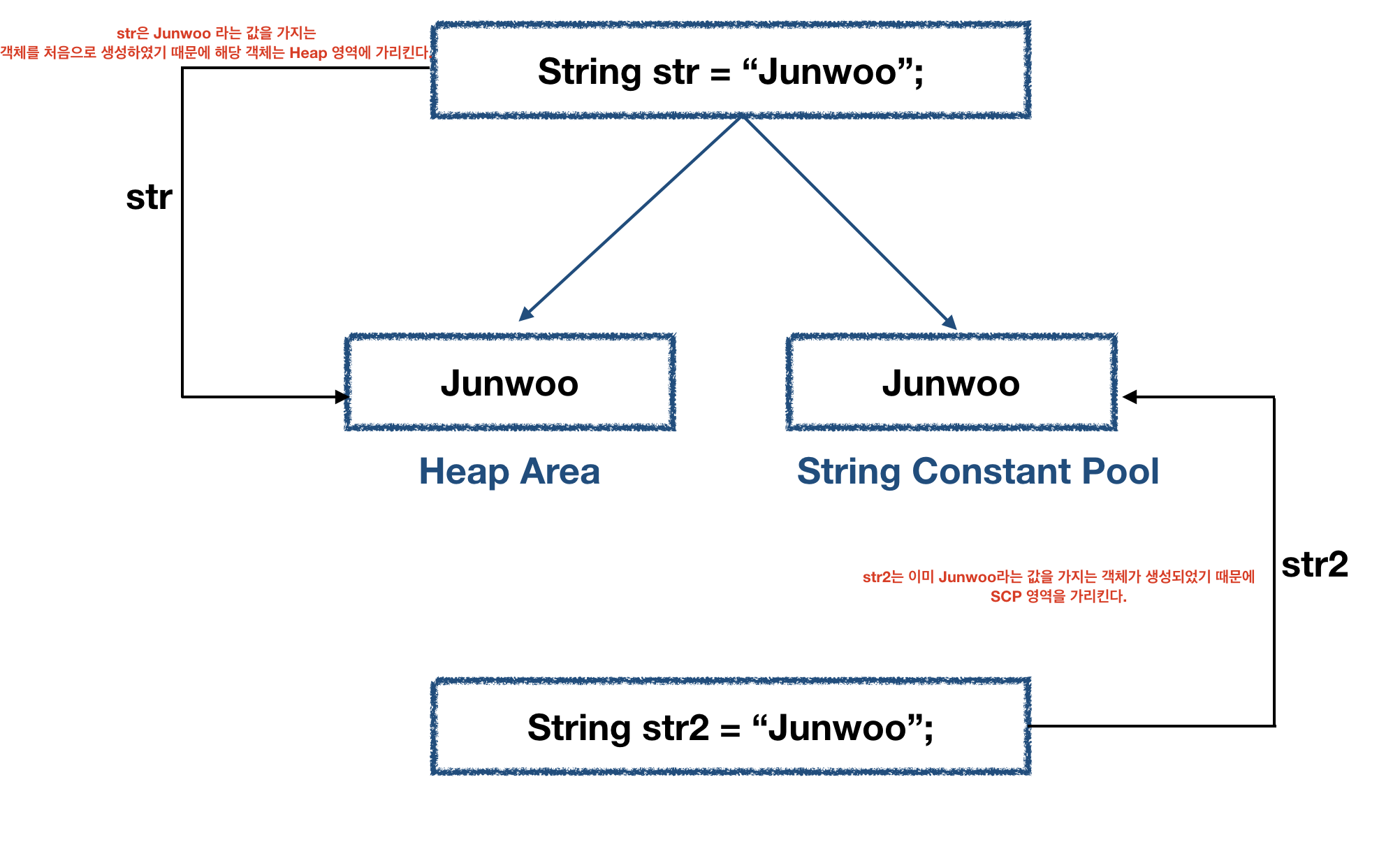 intern() 메서드를 사용함으로써 똑같은 값을 가지는 문자열은 같은 메모리를 공유한다는것을 보장받을 수 있다.