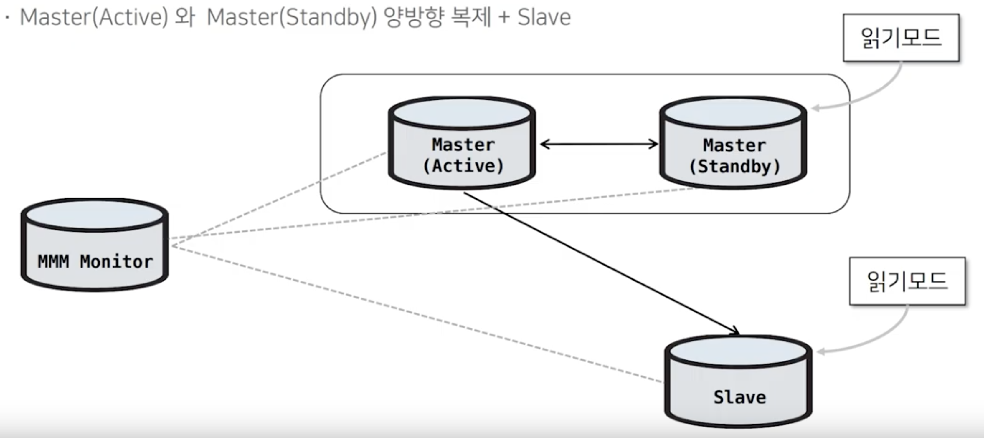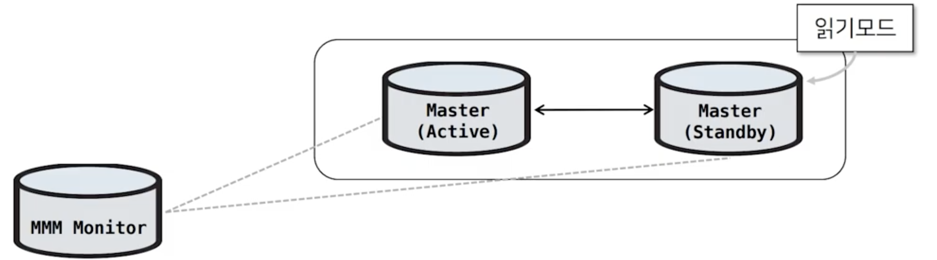 Master (Standby) 는 데이터가 변경되지 않도록 MMM 모니터로부터 읽기모드로 제어된다.