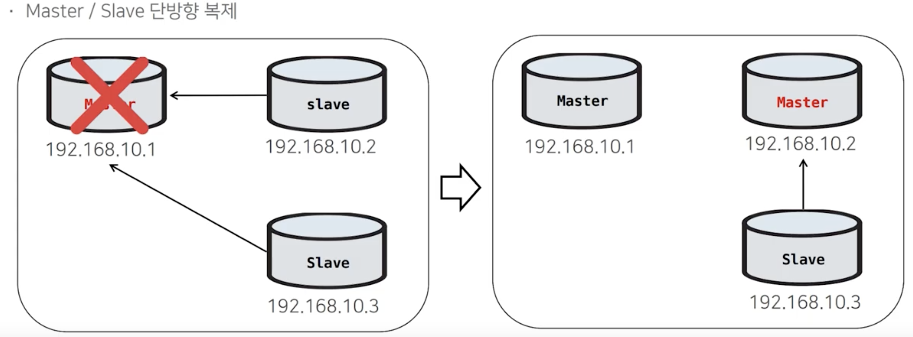 마스터 DB가 장애가 나는 경우 더이상 마스터 DB는 정상적인 데이터를 갖을 수 없다고 판단하여 마스터와 기존 Slave와의 복제를 끊는다.