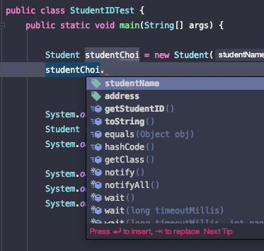 System.out.println(studentChoi.getStudentID());