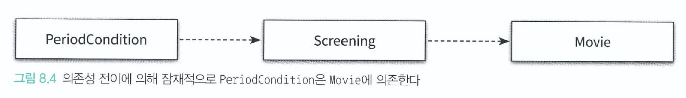 PeriodCondition 클래스의 의존성 ![]() 2. 의존성 전이Screening이 가지고 있는 의존성 : Movie, LocalDateTime, Customer PeriodCondition이 가지고 있는 의존성 : DayOfWeek, LocalTime, Screening