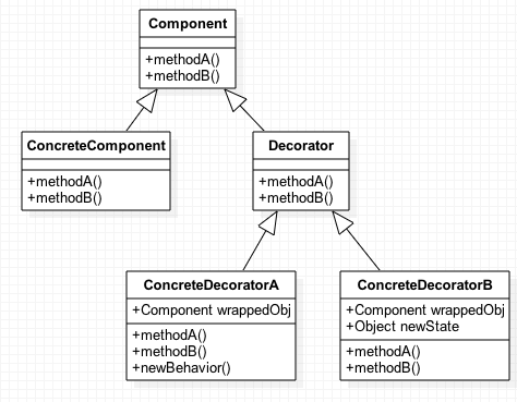 - Decorator - Component와 ConcreteDecorator를 동일 시 하도록 해주는 역할