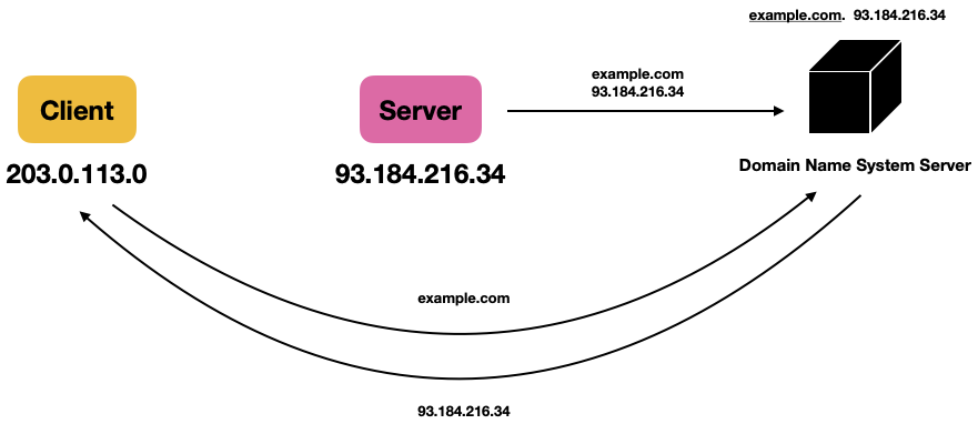 서버가 자신의 도메인을 DNS 서버에 등록을 하면 클라이언트가 해당 도메인에 접근 시 자신의 hosts 파일에 해당 도메인이 있는지를 검색하고 존재하지 않다면 DNS 서버로 접근해 해당 도메인에 대한 IP주소를 가져온 다음 접근할 수 있다.