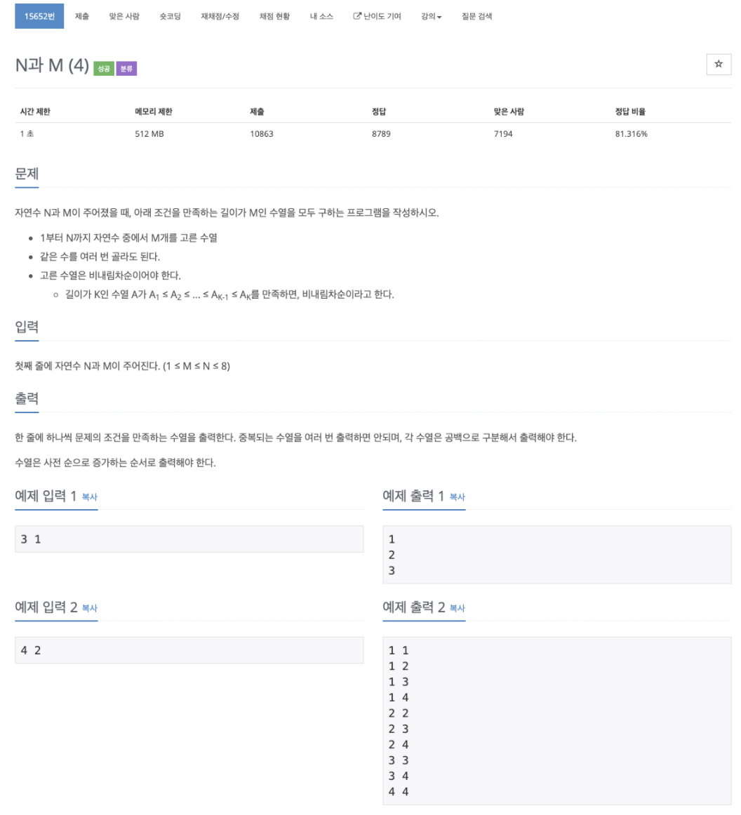 | (알고리즘) N과 M (3) - 중복순열 (1) | 2020.10.21 |