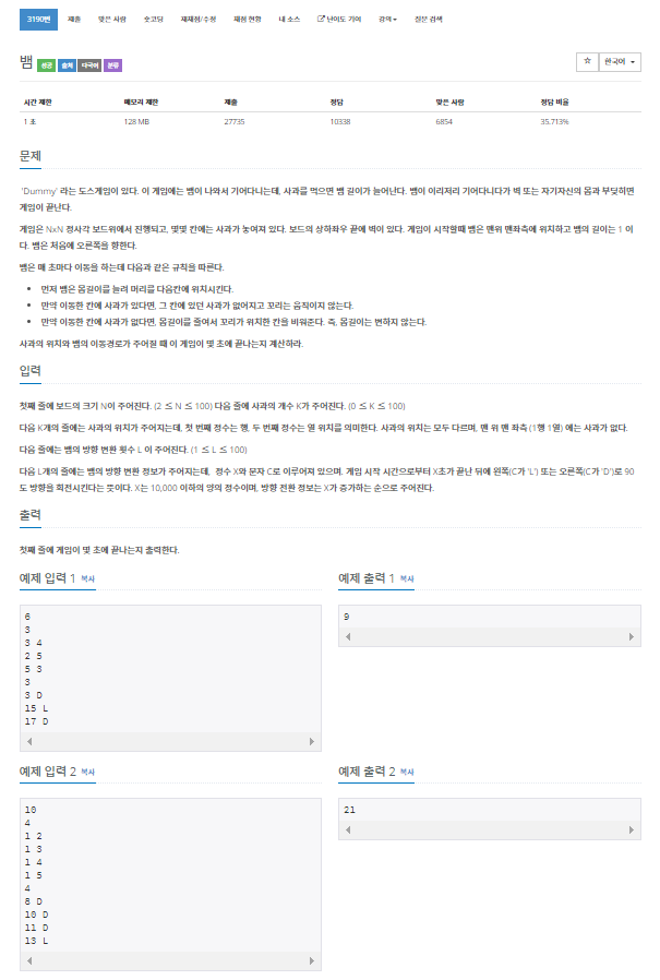 - 다음칸에 사과가 없다면 뱀의 길이를 늘리지 않는다.