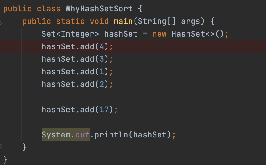 public class WhyHashSetSort {
