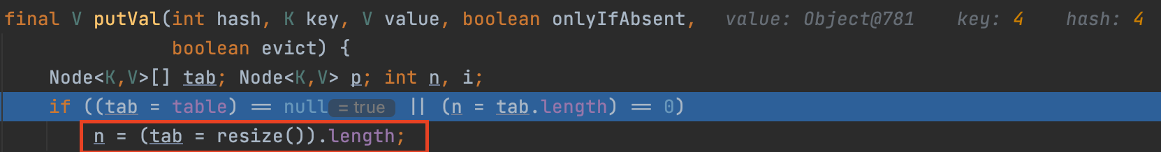 초기 resize의 경우에는 16개의 노드를 초기화하면서 끝난다. (DEFAULT_LOAD_FACTOR = 16)