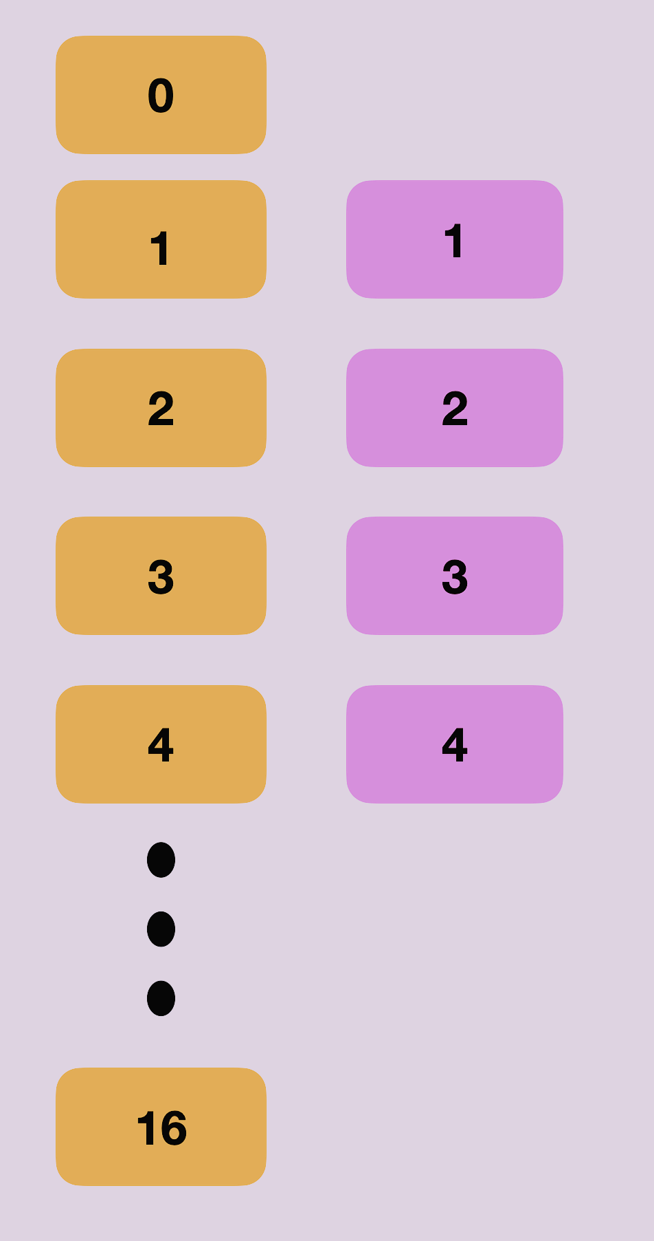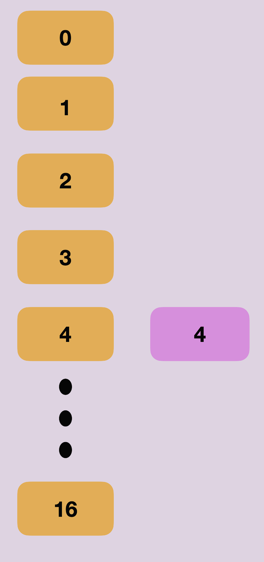 16개의 노드 중 4번째의 인덱스에 4에 대한 노드가 만들어졌고 해당 노드의 첫 번째 값은 4가 되었다.