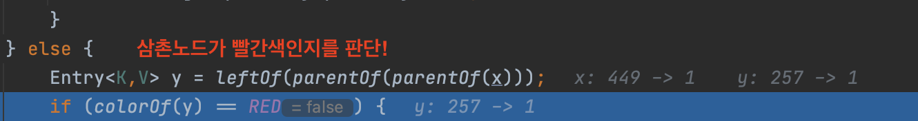 Entry<K,V> y = leftOf(parentOf(parentOf(x)));