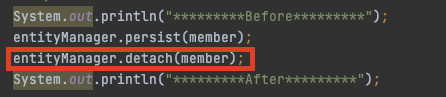 위의 코드에서 entityManager.persist(member); 을 함으로서 이제 영속성 컨텍스트에 관리가 되는 상태가 된다.
