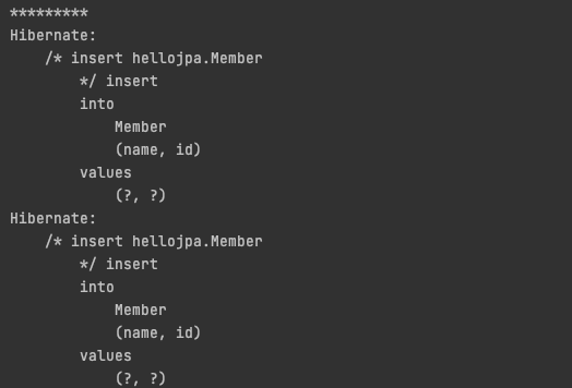 아래 코드를 실행시키면 persist 하는 시점이 아닌 ******* 이후에 commit 시점에 쿼리가 발생하는 것을 볼 수 있다.