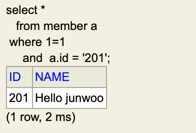 아래와 같이 101L을 PK로 하는 Member 인스턴스를 저장하고 조회하는 코드를 작성해보자!