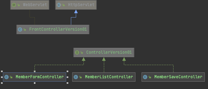 지금부터 다섯 가지 버전을 통해서 FrontController 패턴을 구현해보고자 한다.