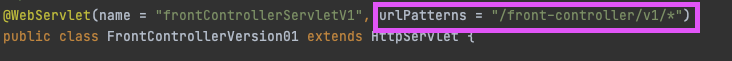 @WebServlet(name = "frontControllerServletV1", urlPatterns = "/front-controller/v1/*")