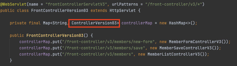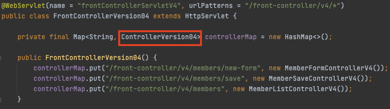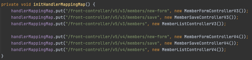 현재의 문제점Version03, Version04 모두 원래의 취지에 맞게 FrontController에서 각각의 역할에 맞는 컨트롤러에게 전달하고 해당 컨트롤러는 비즈니스로직만을 처리할 수 있도록 설계가 되었다.하지만 아직 문제가 남아있다! Version03, Version04 각각을 사용하고 싶을땐 아래의 사진과 같이 사용자가 직접 명시적으로 코드를 수정해야한다는 단점이 있다. ![]() ![]() 해결방안이를 개선하기 위해서 우리는 어댑터 패턴을 사용할 것이다. 어댑터 패턴을 사용을 사용하면 위와 같이 명시적으로 선언하지 않고도 컨트롤러를 매핑시킬 수 있다. |