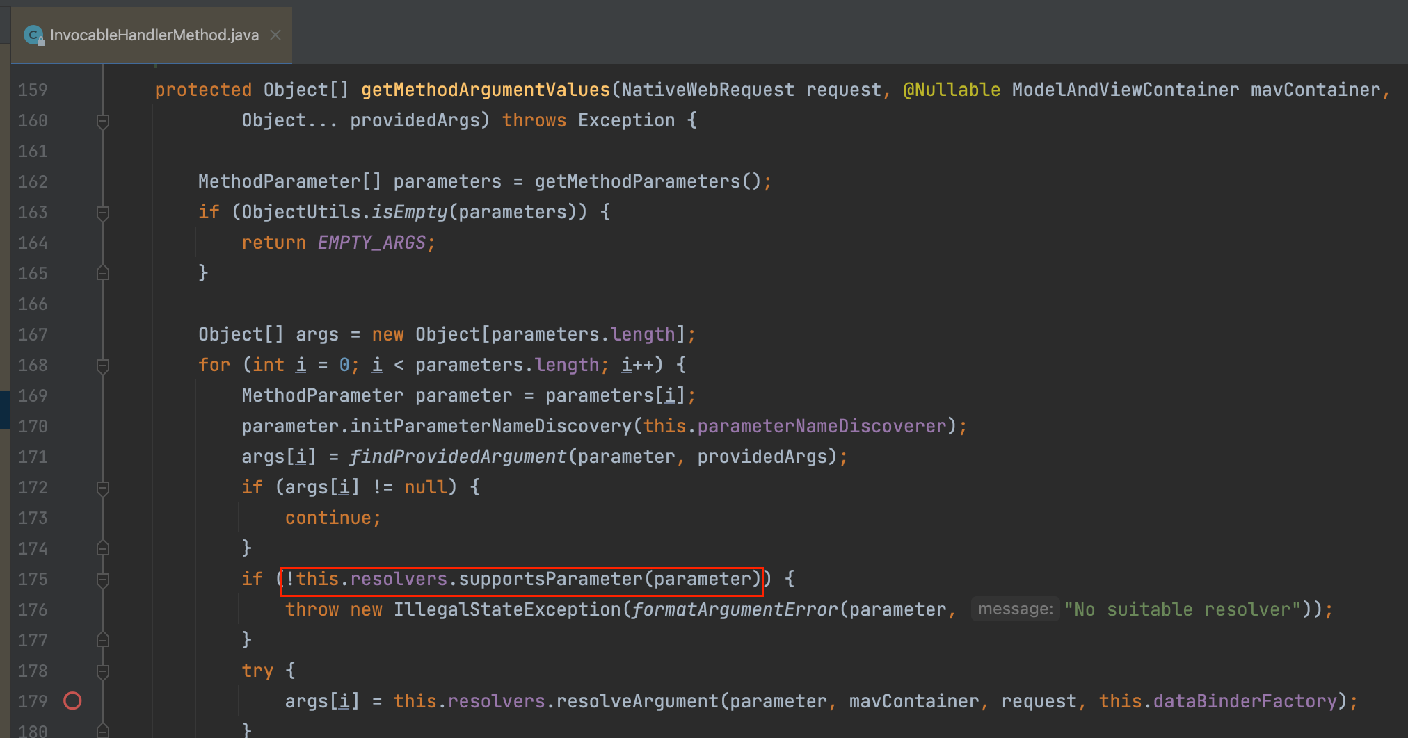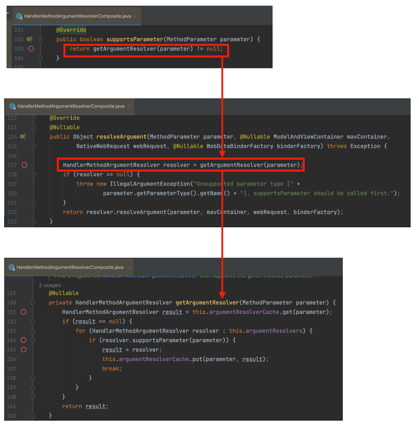 supportsParameter를 통해 해당 파라미터를 처리할 수 있는 rosolver를 조회한다.
