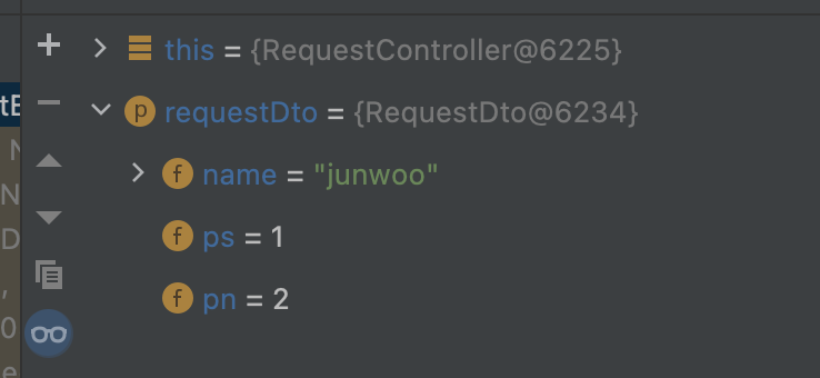 RequestDto requestDto = new RequestDto("junwoo", 1, 2);