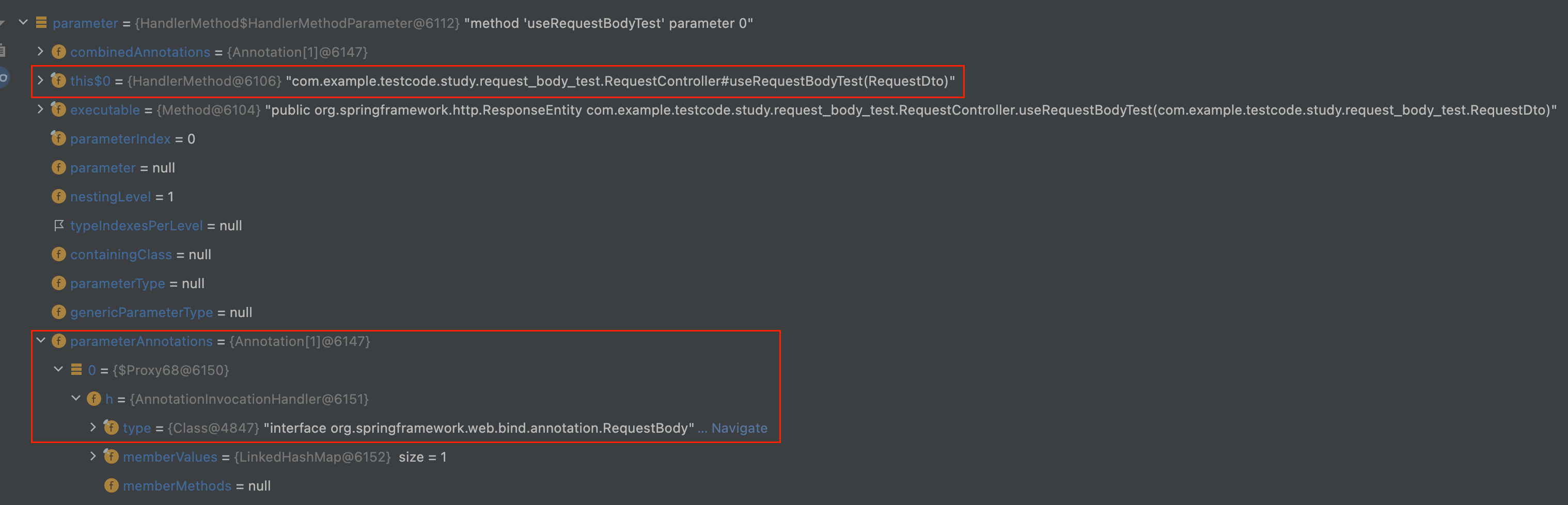 27개의 Resolver 중 파라미터 타입 및 명시된 어노테이션 정보를 처리할 수 있는 Resolver를 조회한다. (@RequestBody RequestDto requestDto)