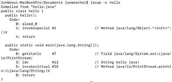JDK에 들어있는 자바 컴파일러(javac)를 사용하여 바이트코드(.class 파일)로 컴파일 할 수 있다.