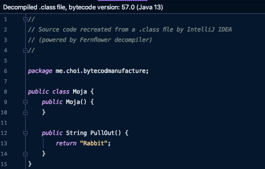 Masula 런타임시 Moja 클래스를 가로채서 바이트코드를 조작해버린다.