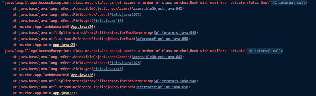 Arrays.stream(bookClass.getDeclaredFields()).forEach(System.out::println);