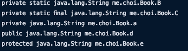 Arrays.stream(bookClass.getFields()).forEach(System.out::println);