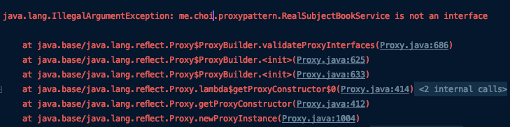 또한 자바의 Proxy의 가장 큰 문제점은 클래스 타입으로 인터페이스를 선언하지 않으면 안 된다는 커다란 단점 또한 존재한다.