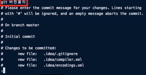 vi 들어가지 않고 메시지 입력과 함께 바로 커밋하는 방법