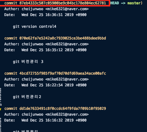 ex) git reset 87eb4333c507c05900be9c04bc178e804ec62781 --hard