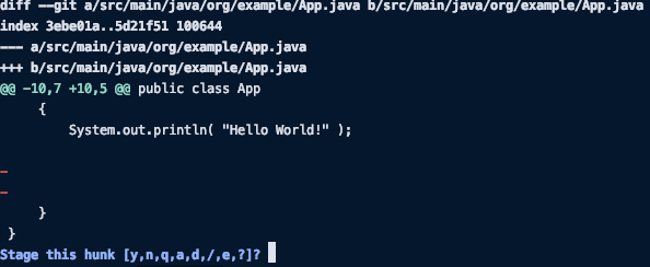 git add -p : 변경사항들을 보여주고 버전관리를 시작할 것인지 물어봄