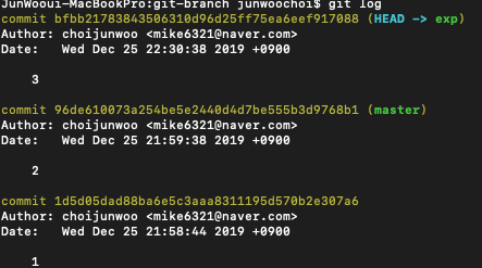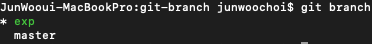 이때, master branch와 exp branch는 같은 상태이다.