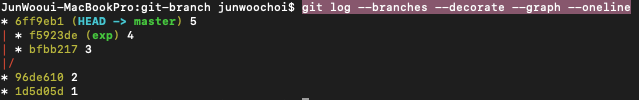 전체적으로 간결하게 현재 브랜치 상태를 보고 싶을 때