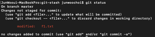 exp branch에서 f1.txt를 수정 후 add 하지 않은 상황에서